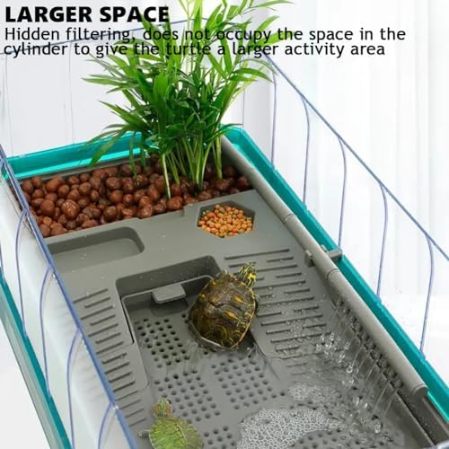 Akwarium 70 x 40 x 35 cm z akrylu 6 mm w odcieniu pomarańczowym. Platforma wygrzewająca 30 x 20 cm z rampą 15°. Filtr wewnętrzny 8 W z przepływem 400 l/h. Pokrywa z otworem karmienia 18 cm. Waży 5,8 kg z wodą do 40 l. Montaż w 15 minut na zatrzaski. Dedykowane do żółwi wodnych i błotnych. Czyszczenie gąbką z melaminy co 2 tygodnie. Otwory odpływowe 4 szt po 5 mm. Symbolizuje jezioro tropikalne.