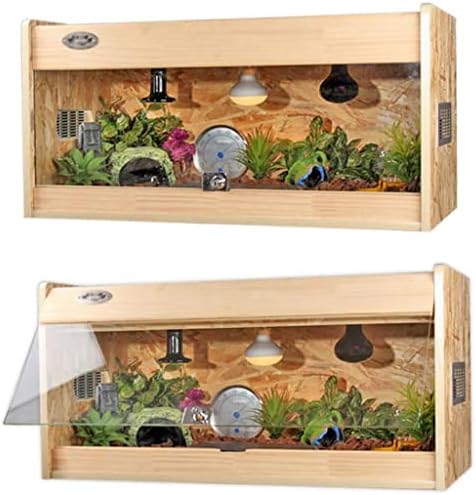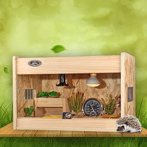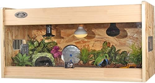 Skrzynia 50 x 30 x 30 cm z szyb 4 mm i schronieniem 20 x 15 cm. Siatka górna 35 x 20 cm z ramą. Drzwi przesuwne z blokadą na magnes. Otwory na kable 10 mm w podstawie. Waży 8,5 kg z podłożem. Montaż w 15 minut bez narzędzi. Dedykowana do żółwi stepowych i jaszczurek. Czyszczenie alkoholem 60% co 3 tygodnie. Podłoże do 5 cm bez wycieku. Kolor naturalny drewna.