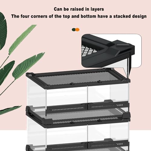 Ściany z hartowanego szkła 5 mm zapewniają widok z każdej strony. Górna siatka wentylacyjna 40 x 20 cm z aluminium anodowanego. Pokrywa antyucieczkowa z zamkiem magnetycznym na 3 kg siły. Przewody wbudowane w ramę dolną o średnicy 8 mm. Terrarium waży 12,4 kg w rozmiarze 60 x 40 x 40 cm. Montaż w 18 minut za pomocą klucza imbusowego. Dedykowane do gekonów orzęsionych i węży zbożowych. Czyszczenie roztworem octu 5% co 2 tygodnie. Dno wodoodporne do 3 cm podłoża. Symbolizuje naturalne środowisko sawanny.